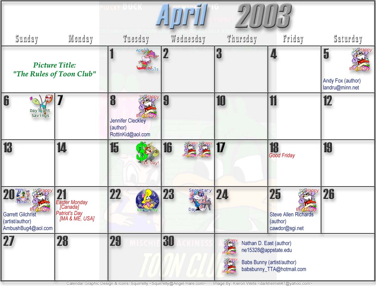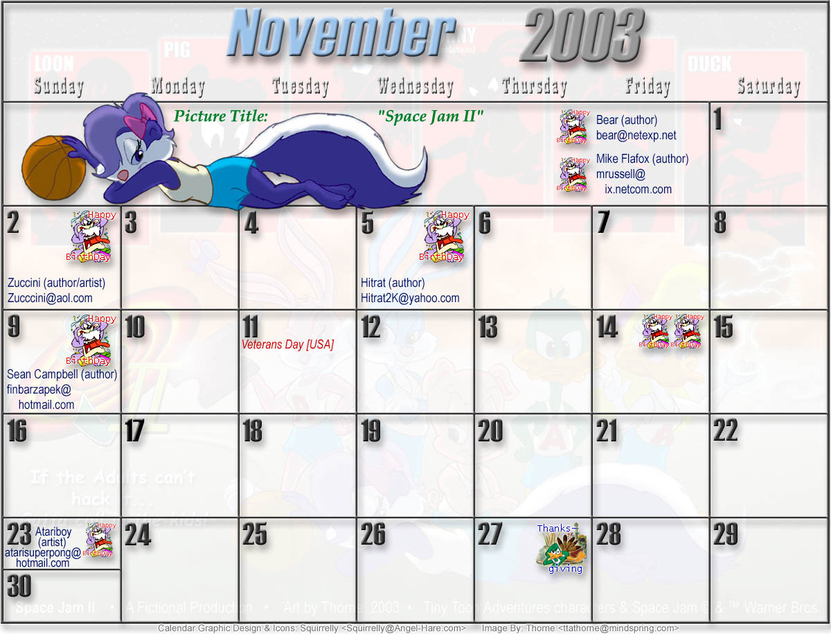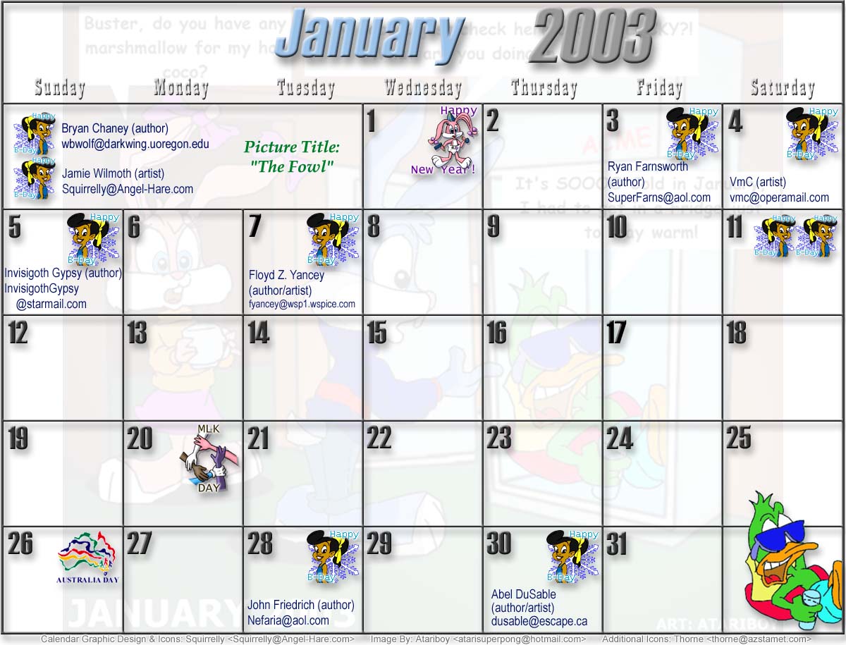 Welcome to the printable version of the Tiny Toons 2003 Calendar!