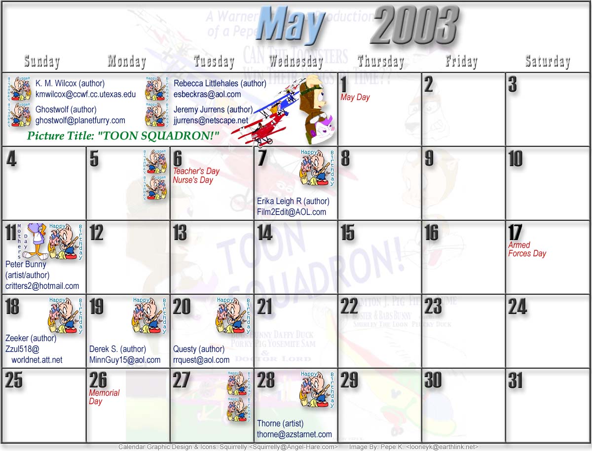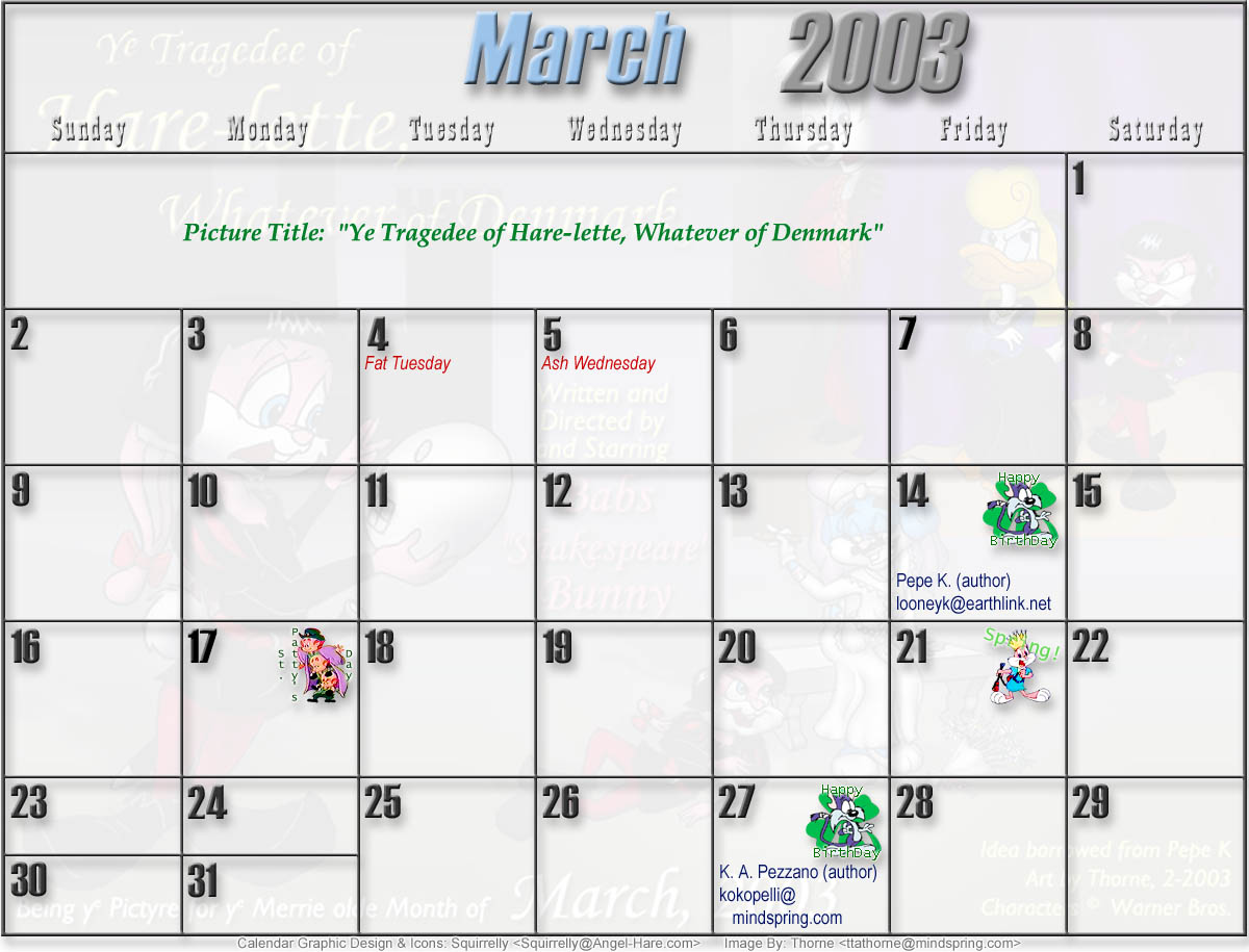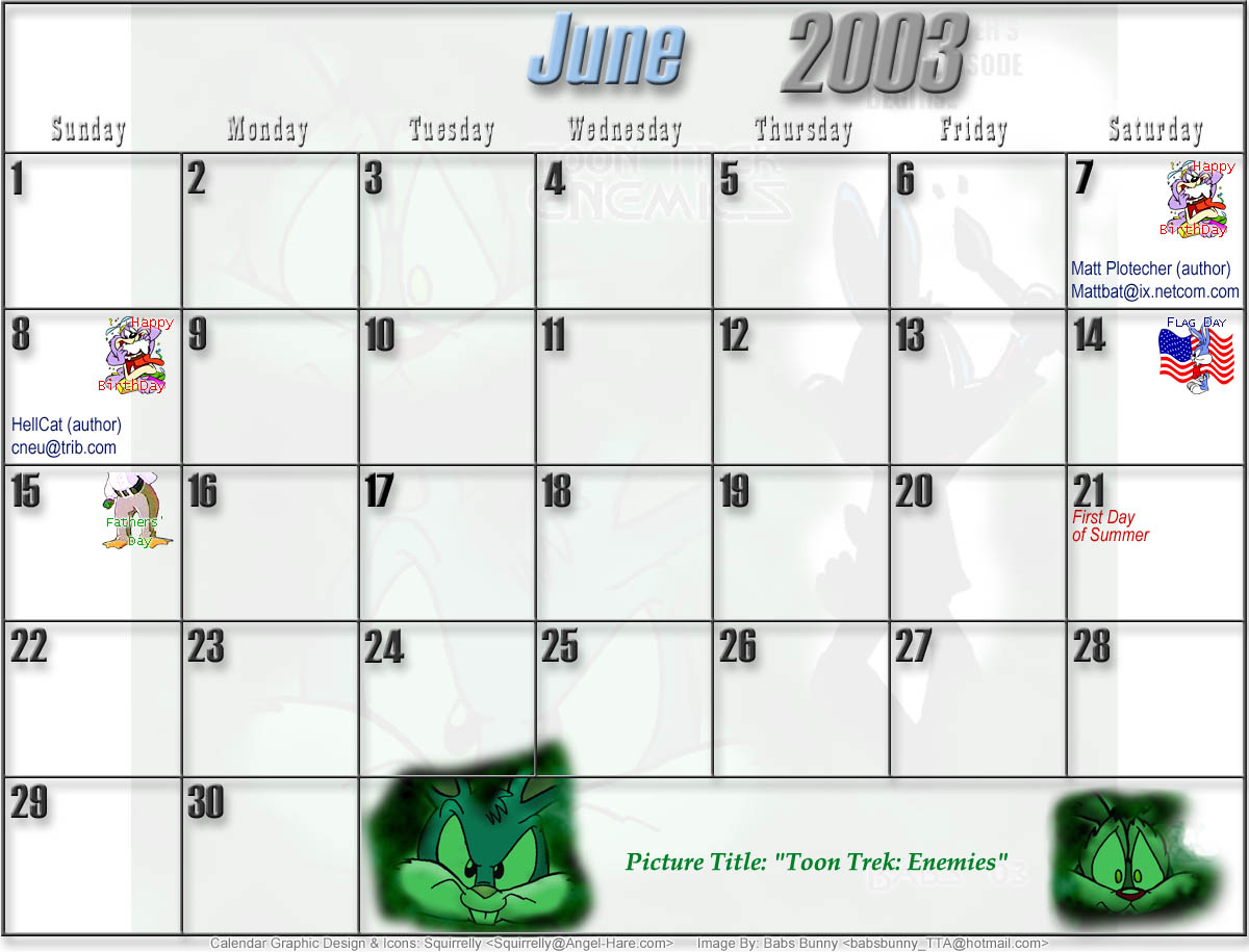 Welcome to the printable version of the Tiny Toons 2003 Calendar!