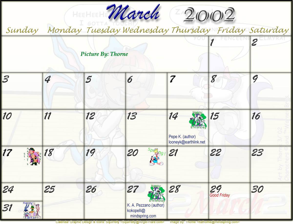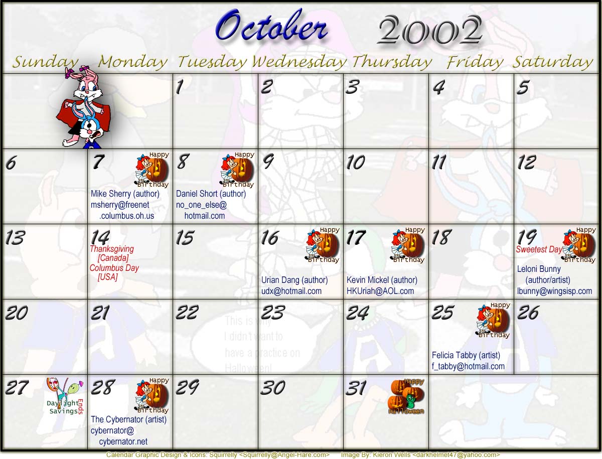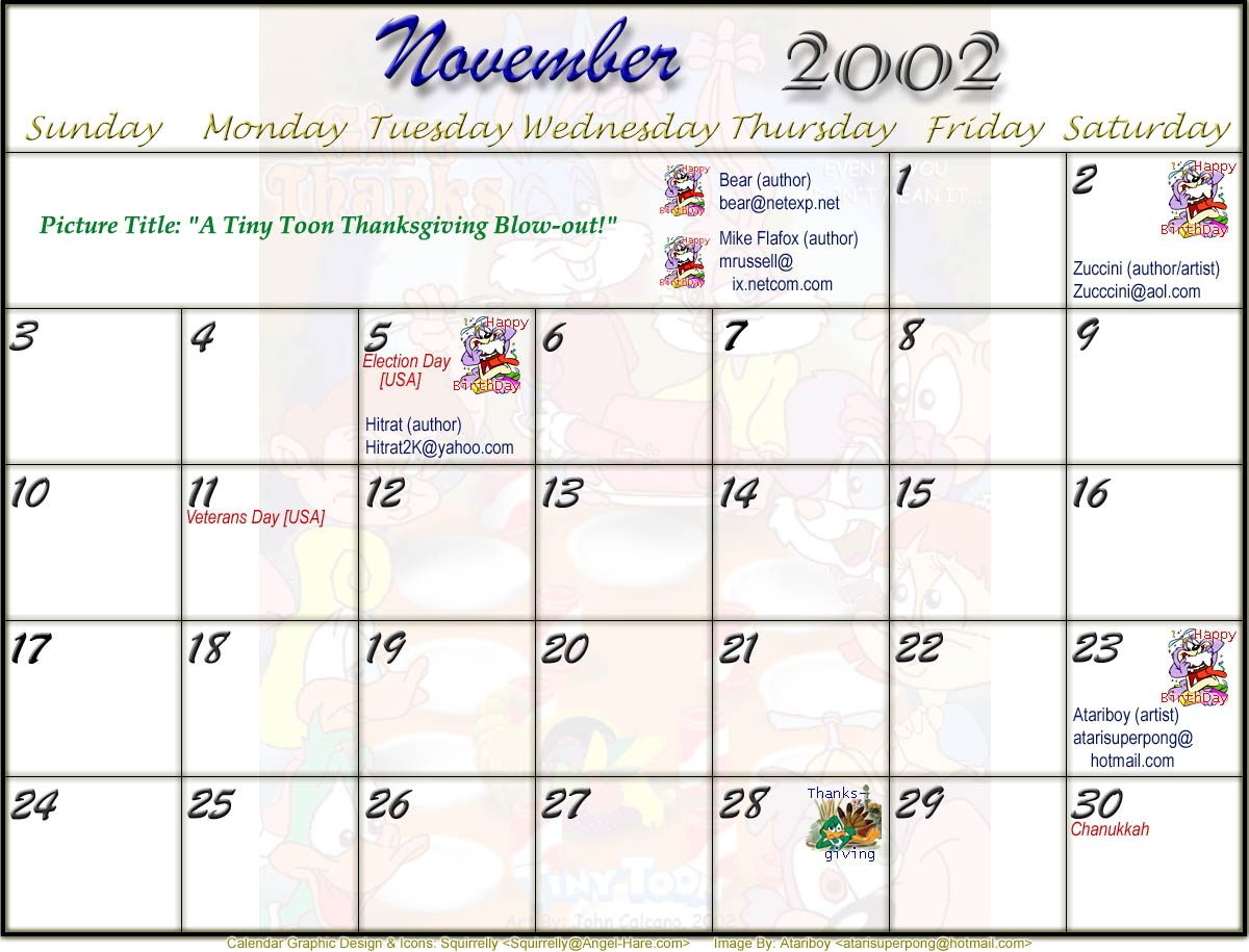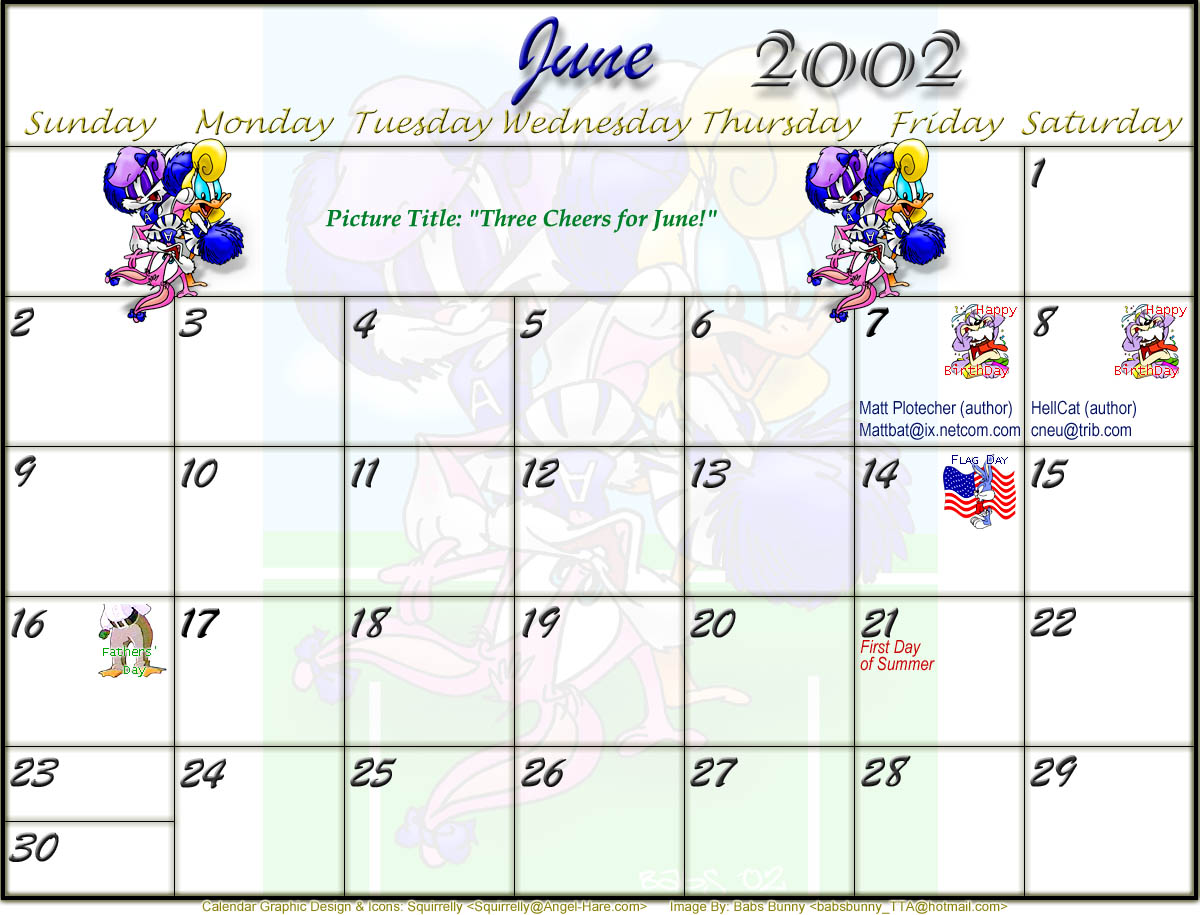 Welcome to the printable version of the Tiny Toons 2002 Calendar!