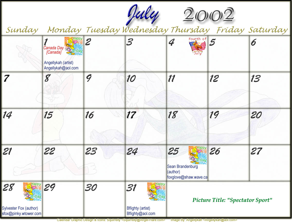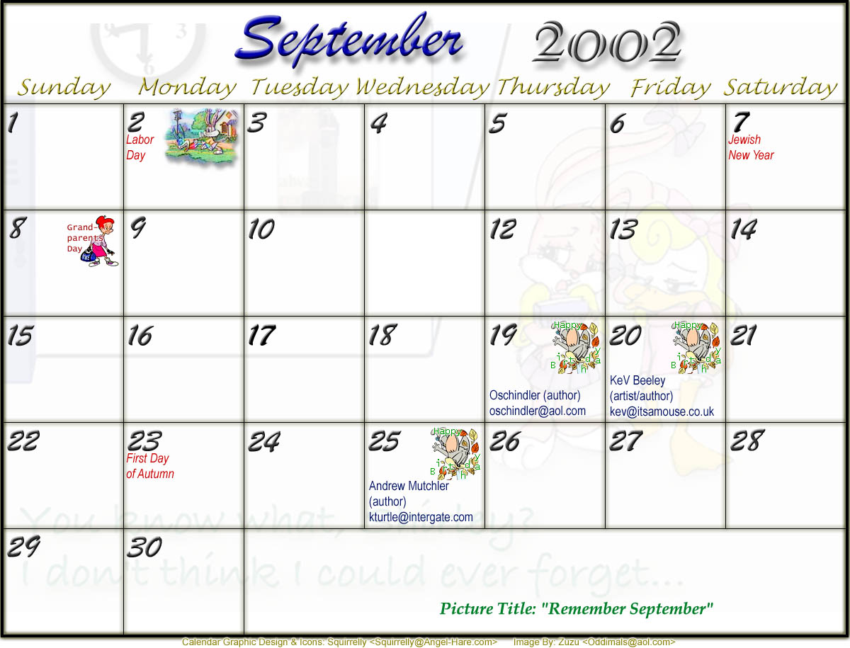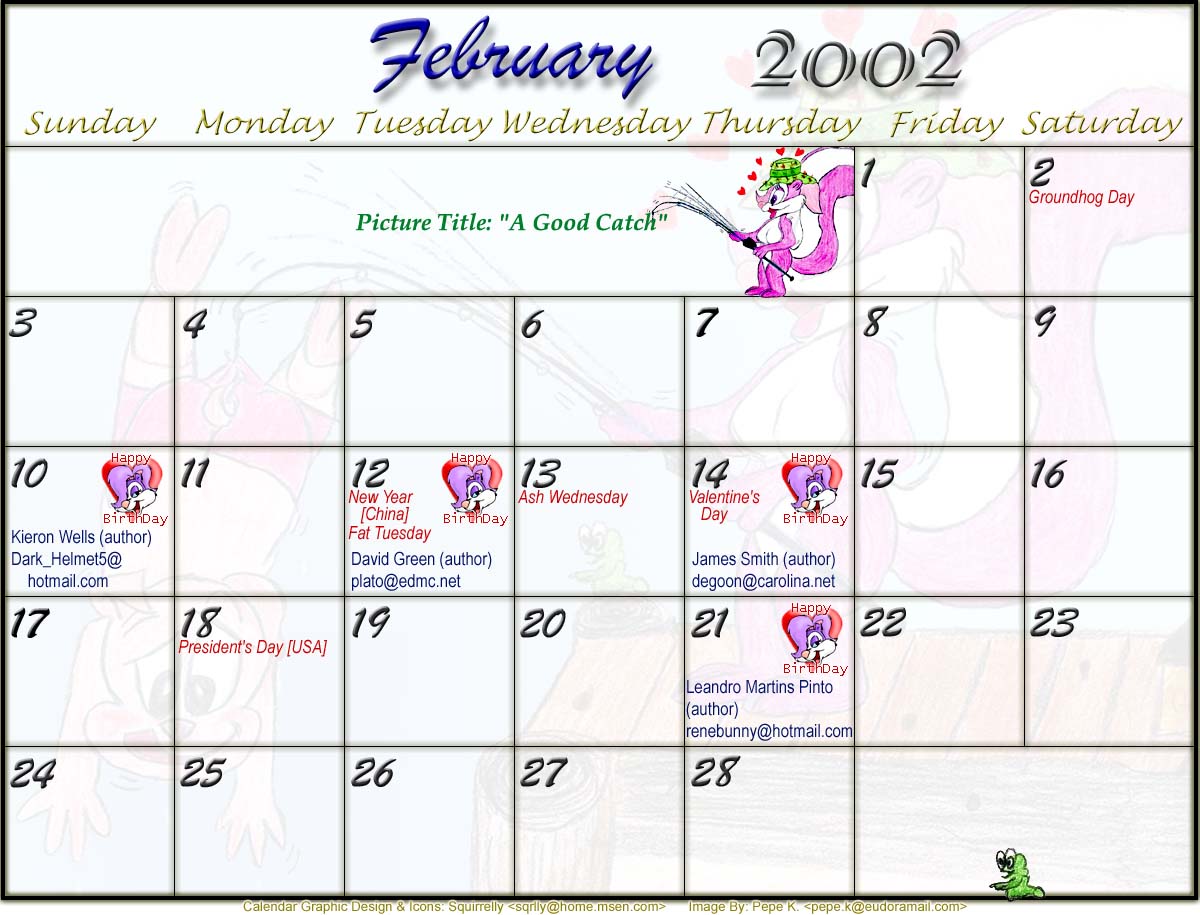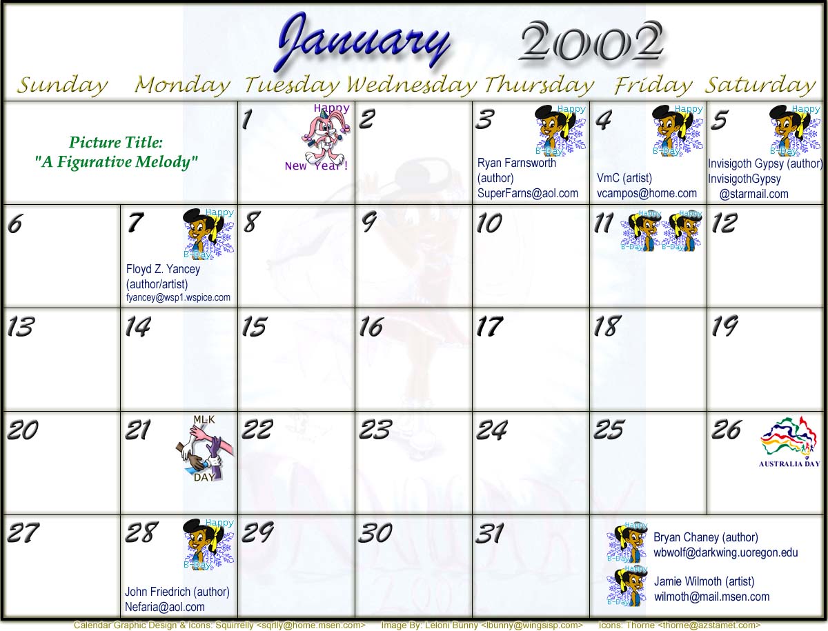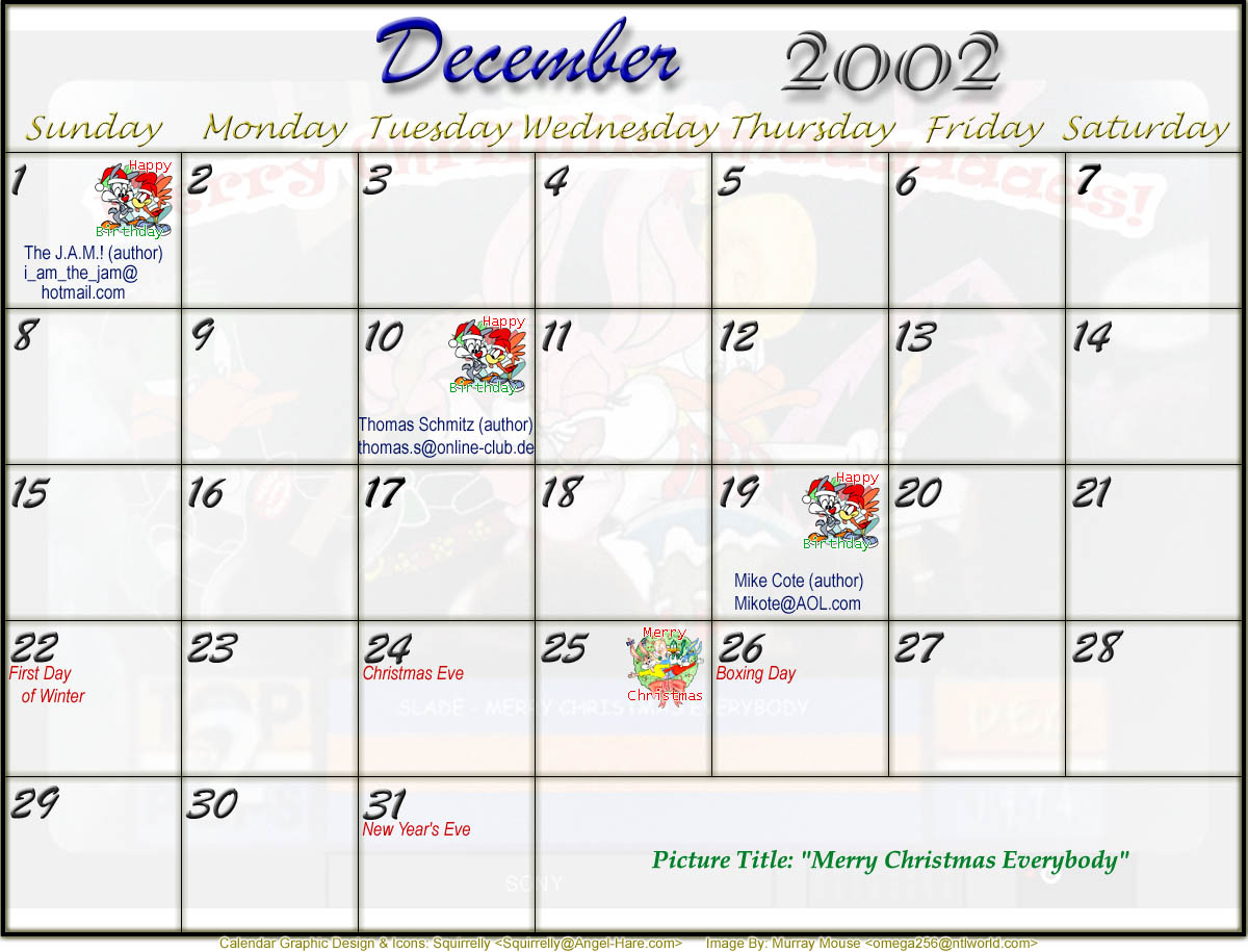 Welcome to the printable version of the Tiny Toons 2002 Calendar!